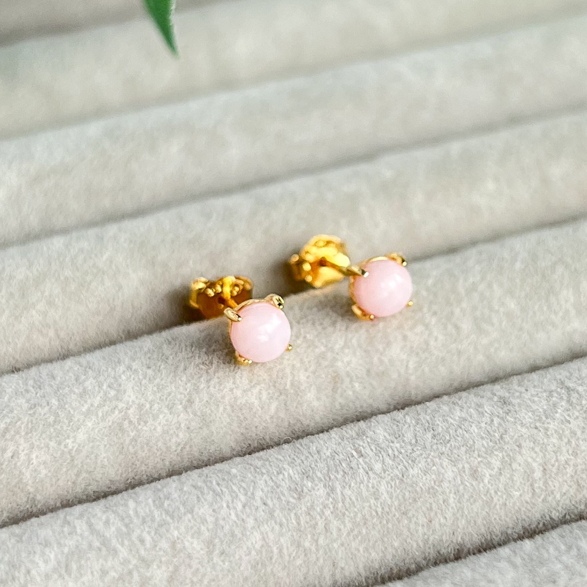 繊細なピンクオパールとゴールドの組み合わせが、女性らしい輝きを放つシンプルなスタッドピアスです。直径約4㎜と華奢なサイズながらも、耳元を華やかに彩ります。